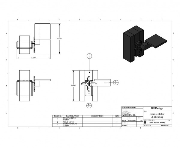 Four sticks are mounted on a box top that is attached to a servo motor. The servo motor rotates ninety degrees, opening the top of the box and centering the sticks with the oncoming spools. Once the spools are all loaded on each stick, the servo motor will rotate ninety degrees clockwise, closing the box